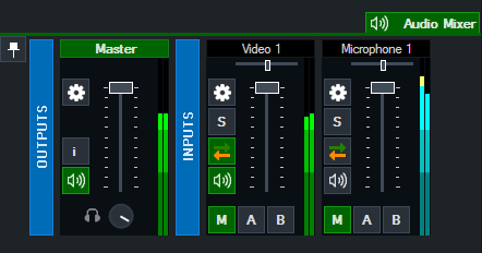 Click the Green and Orange Arrow button to enable/disable automatic mixing of audio.