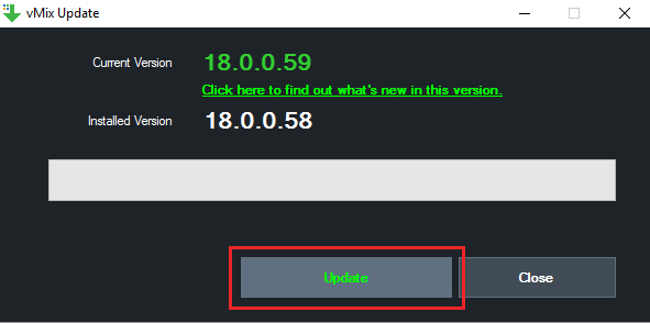 It will download the update and run it automatically. It may also ask you to close some programs running on your computer in order to complete it (such as Skype and Chrome). Once finished, click close on the updater and re-open vMix.