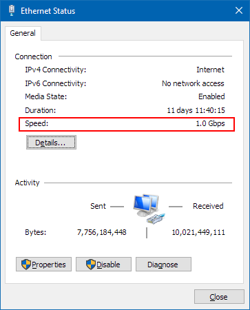 How to check network is connected as gigabit in Windows