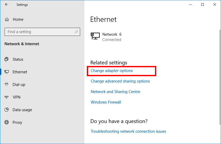 4. Click Change adapter options under Related Settings